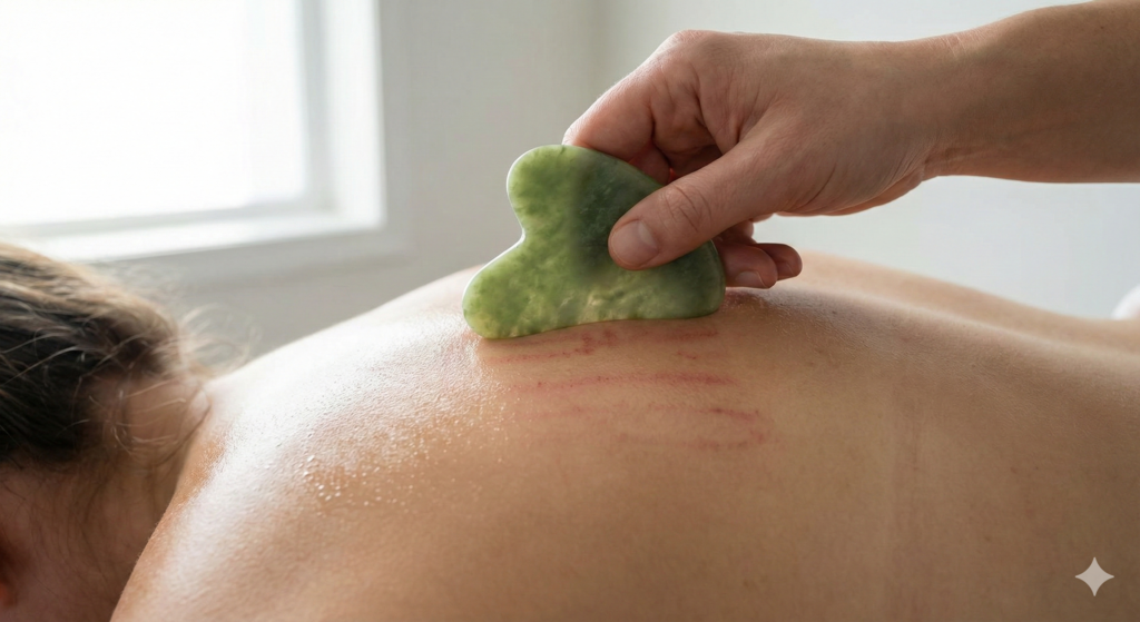 Gua sha (pronounced “gwa-shah”) is a technique where a small, smooth-edged tool is used to gently stroke or scrape areas of your skin to try to improve circulation and promote healing.